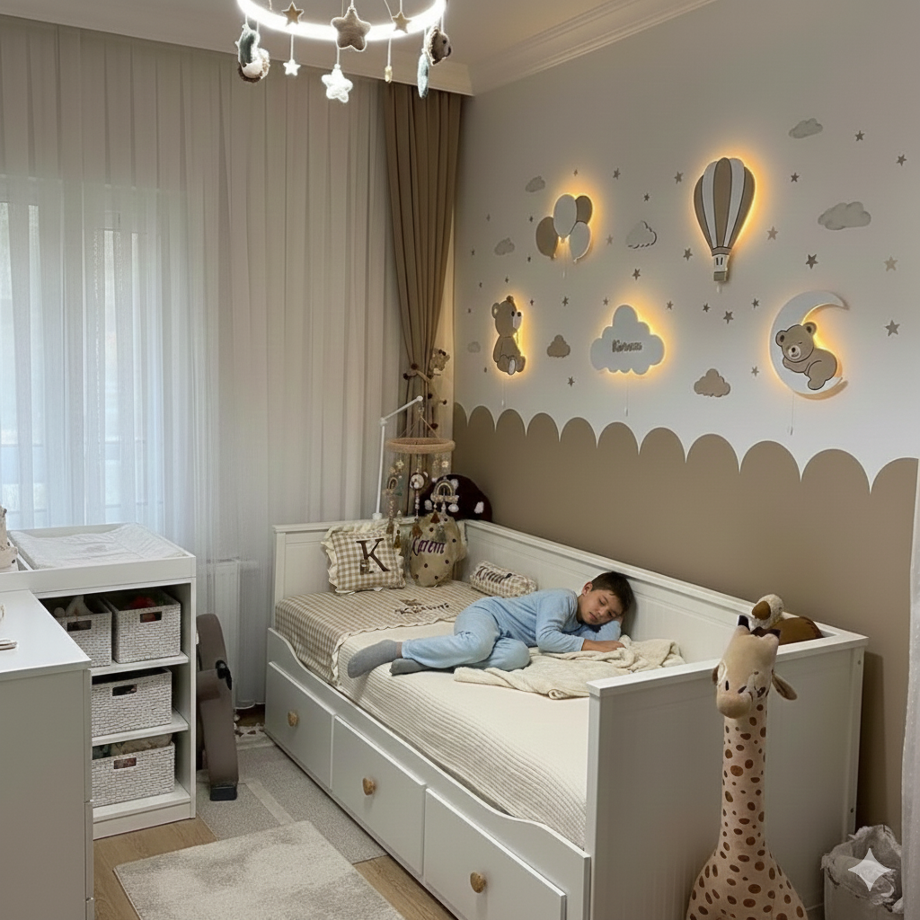 Transformez l'espace de votre enfant avec des lits cabanes, luminaires en bois et décorations personnalisées. Chaque pièce est conçue avec amour pour s'adapter parfaitement à vos dimensions et à votre style.
